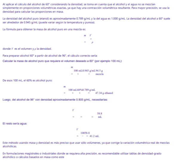 ES CORRECTO ESTO : 151,5886 ML ALCOHOL 96 +98,4135 AGUA DEST. ?